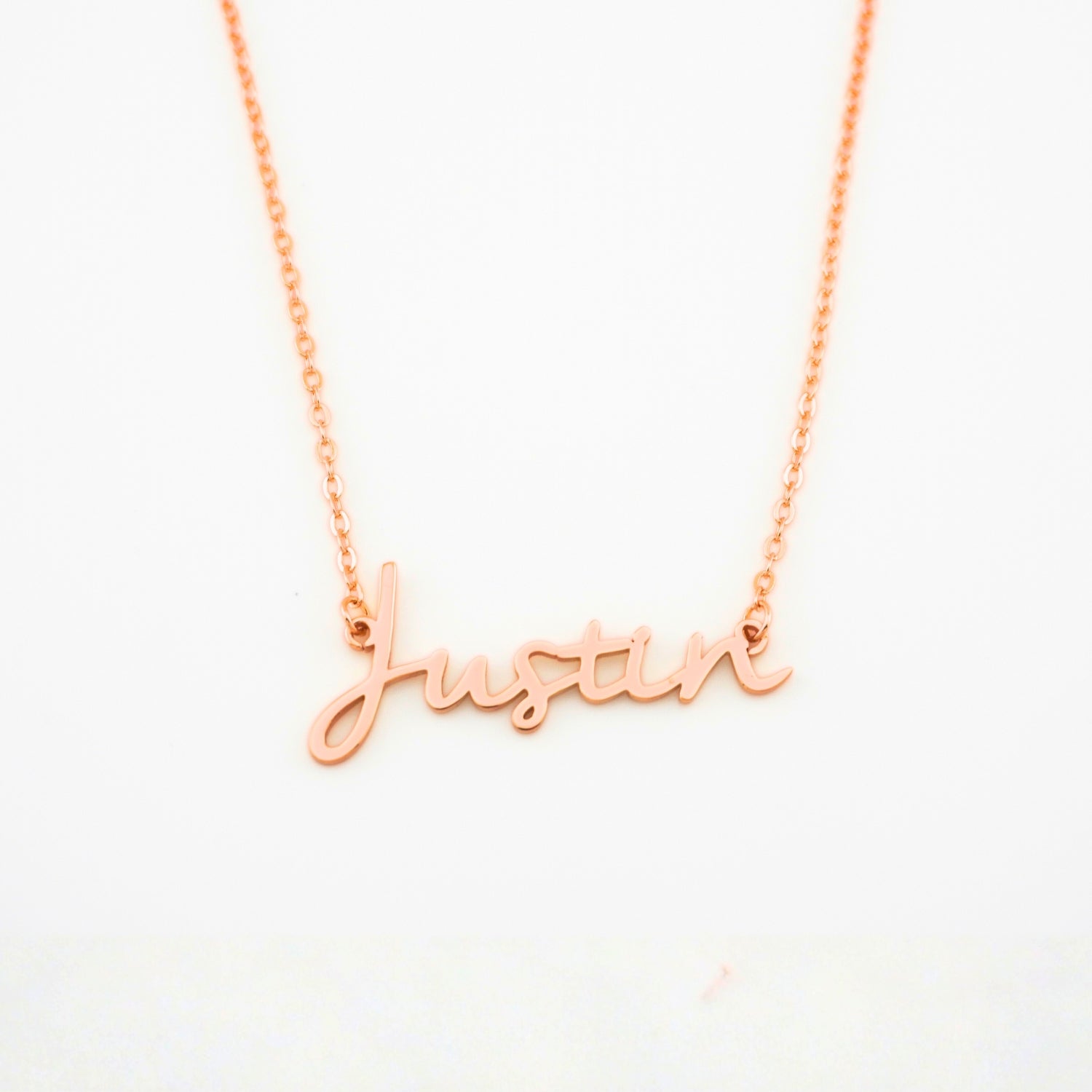 - Halskette mit individuellem Namen: Unsere charakteristische Halskette kann mit jedem beliebigen Namen personalisiert werden.