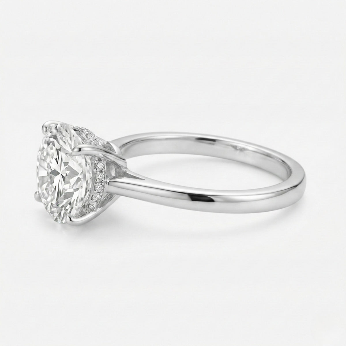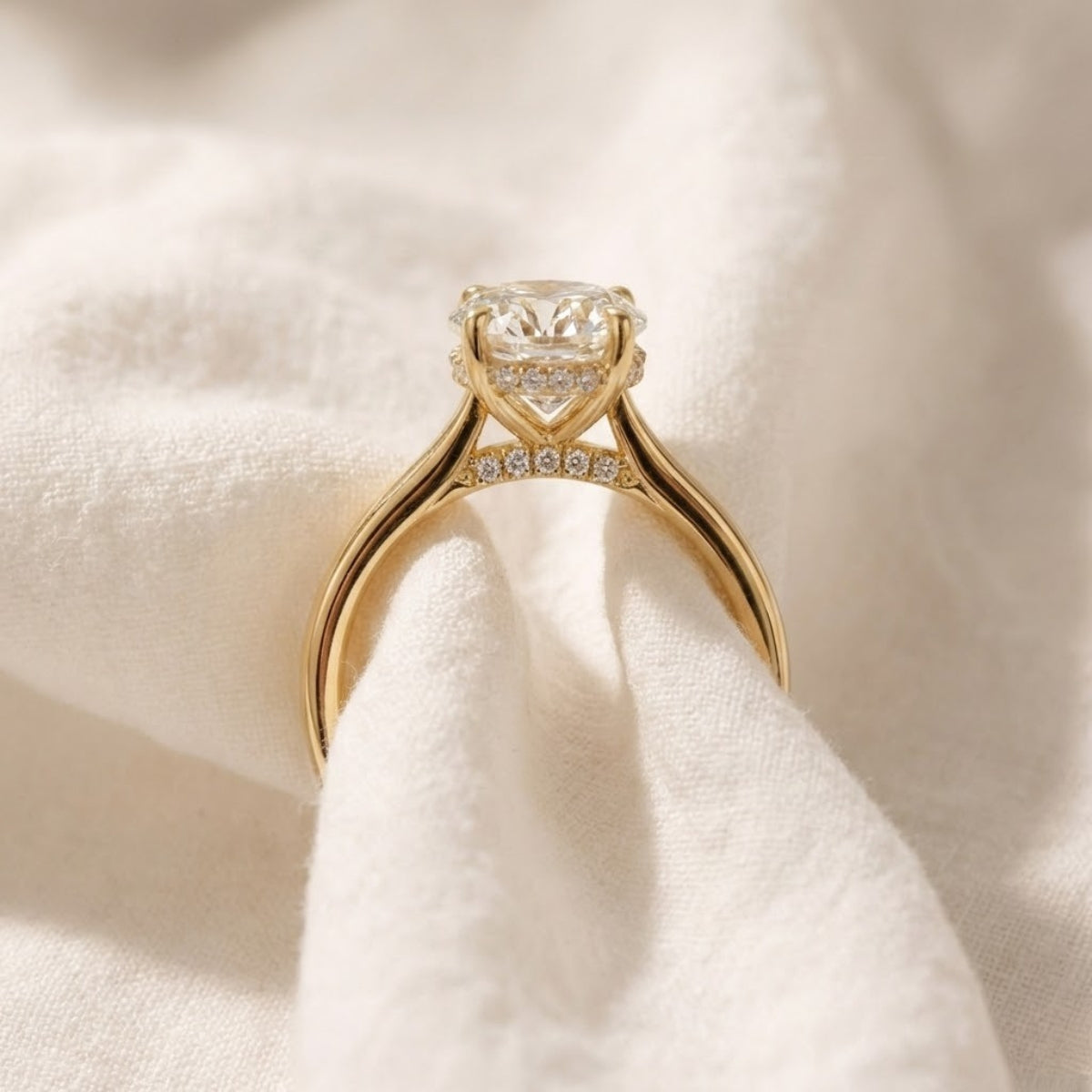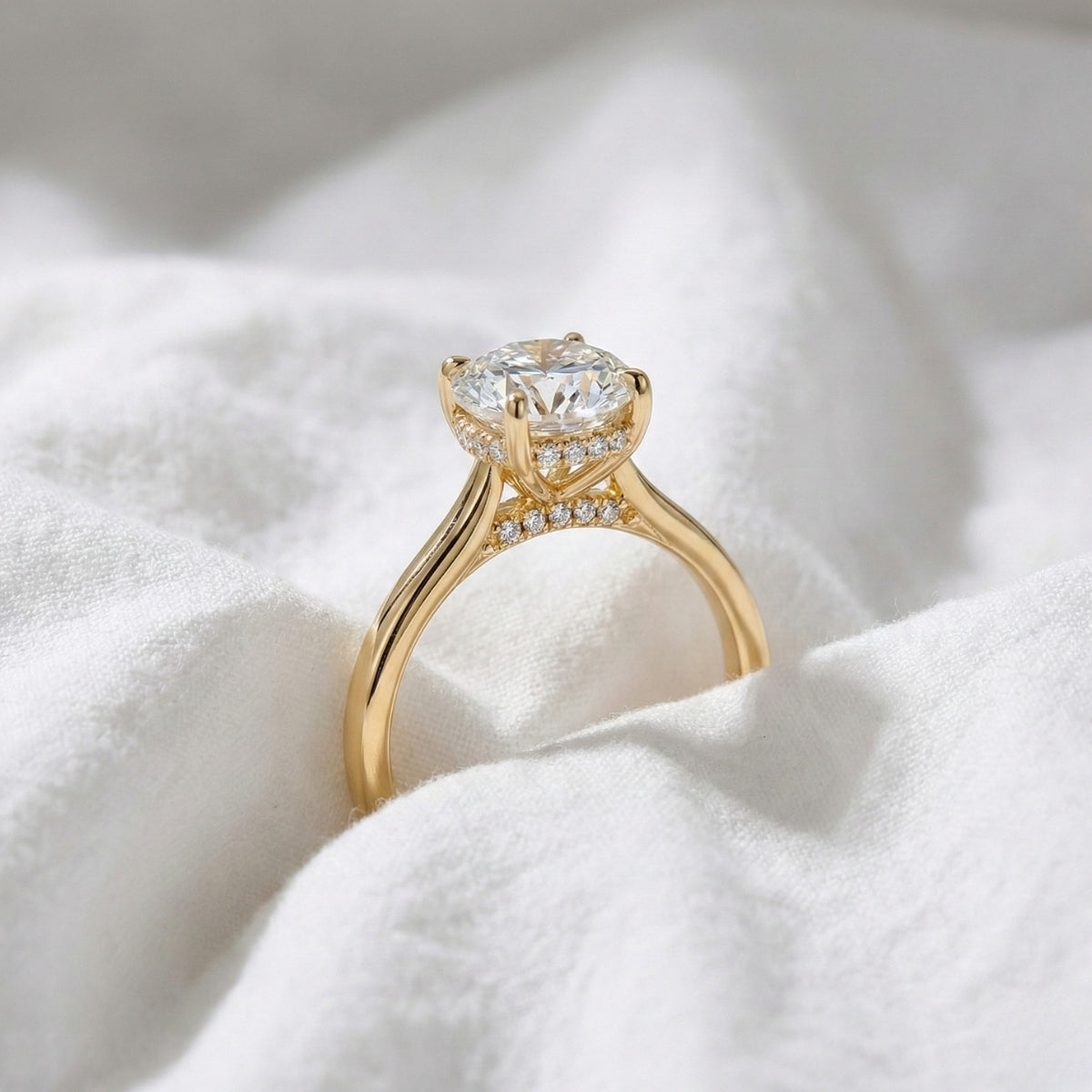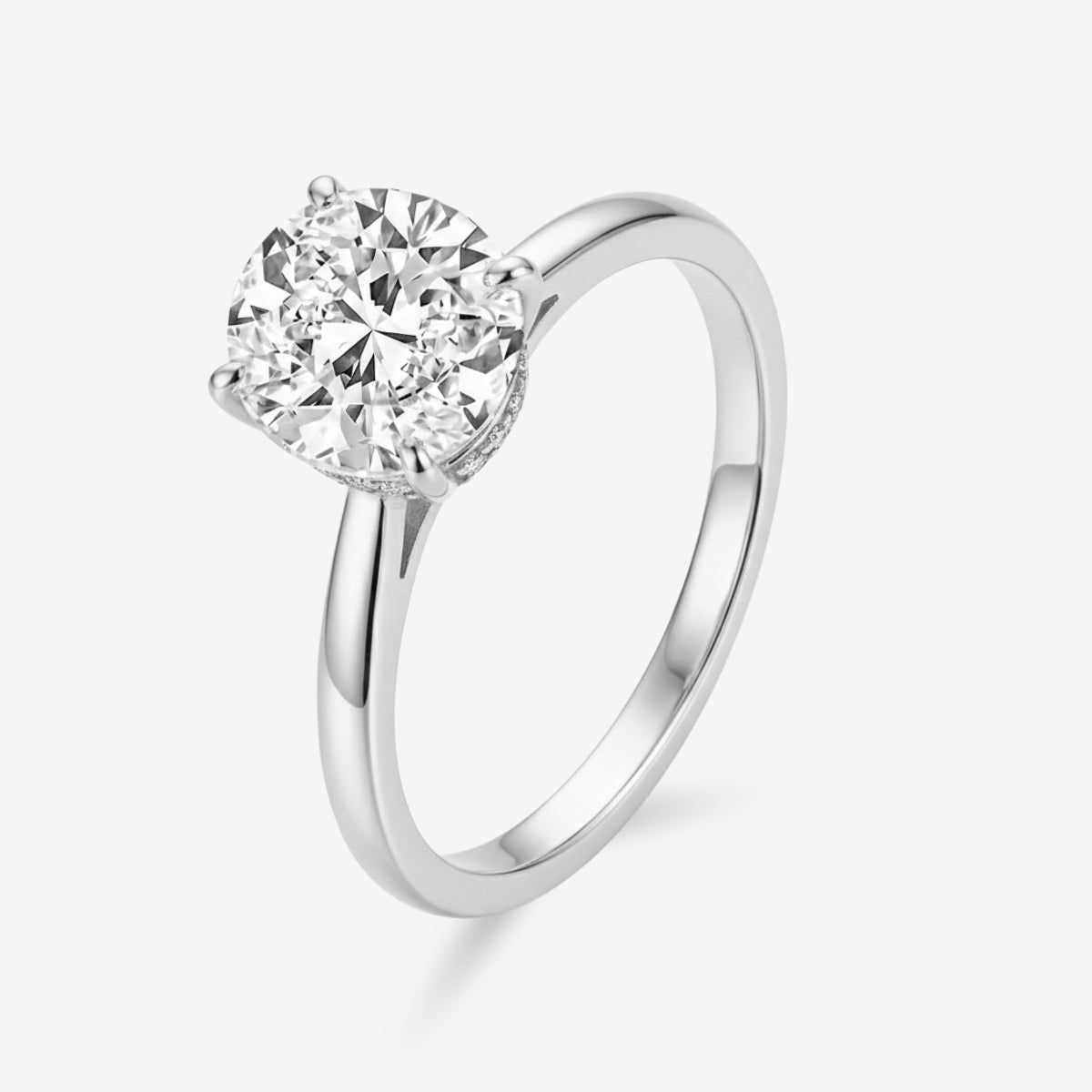 The round center stone shines bright and timeless. It’s a look that never goes out of style.