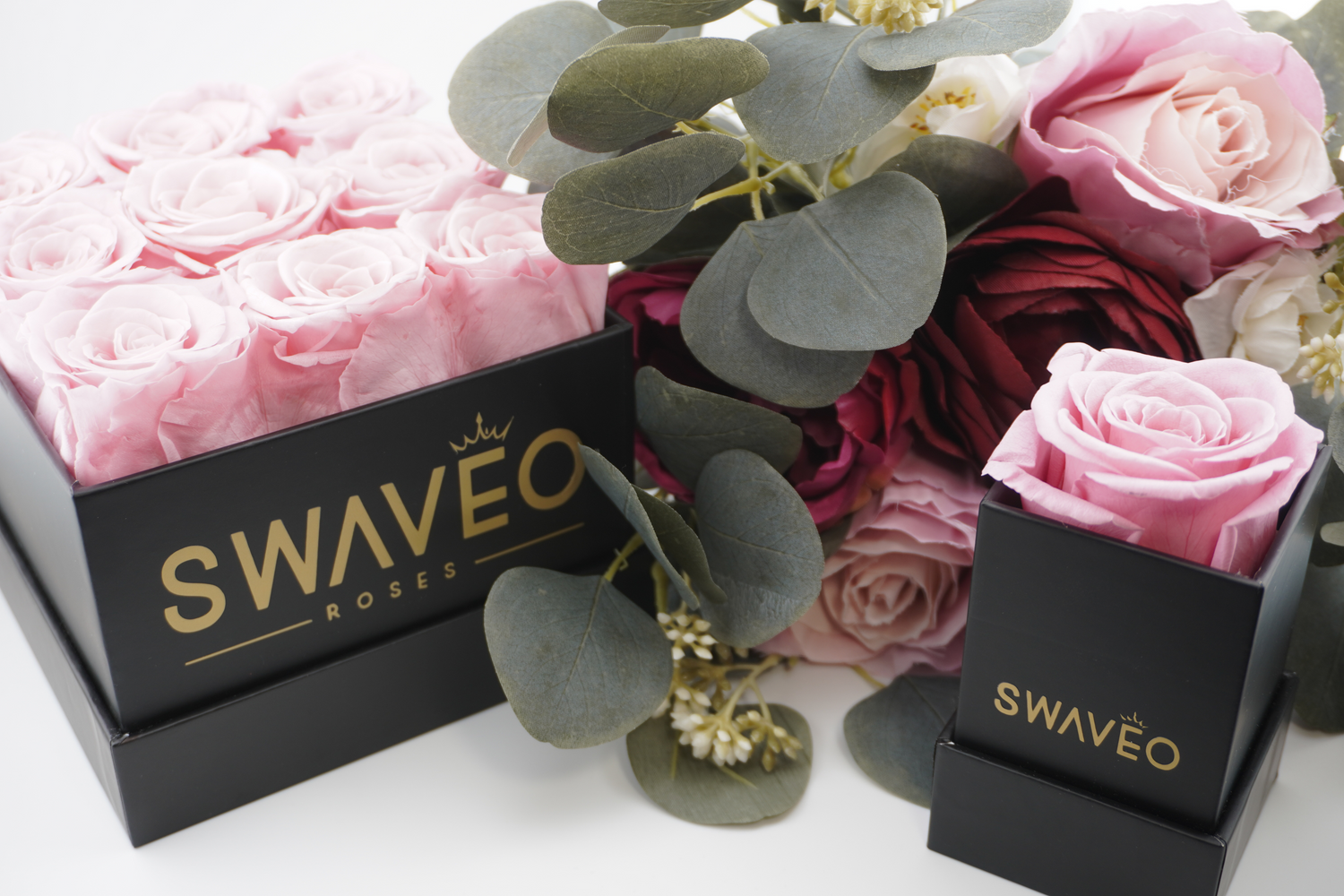 - Caja de rosas eternas: una impresionante exhibición de rosas preservadas que duran para siempre.